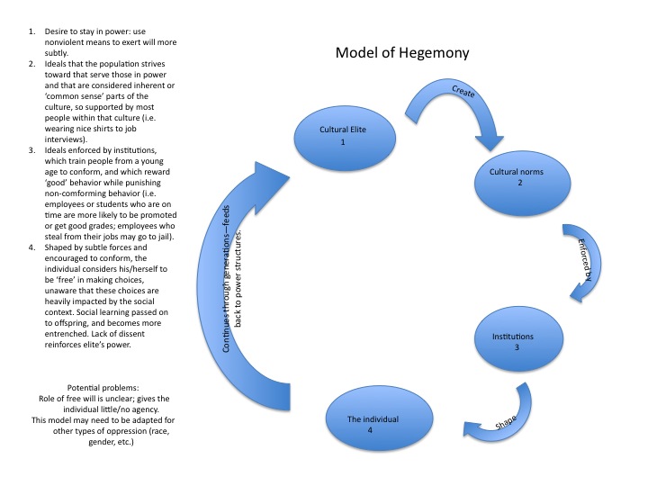 I am taking an LIS theory class this semester, and since we could use just about any theory we wanted (which would be hard not to do, given how interdisciplinary our field is!) I decided to go with the theory of hegemony. I’ll spare you the contents of my papers on the history of the theory and just focus on the model here (if you’re curious, the International Gramsci Society has some good resources, and I’m more than happy to share citations and such with anyone who has questions).